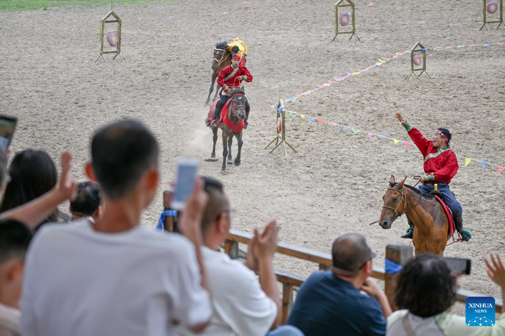 Audience watch a performance in Horqin Right Wing Front Banner, Hinggan League, north China's Inner Mongolia Autonomous Region, Aug. 8, 2024. (Xinhua/Lian Zhen)