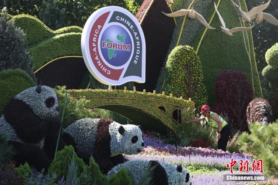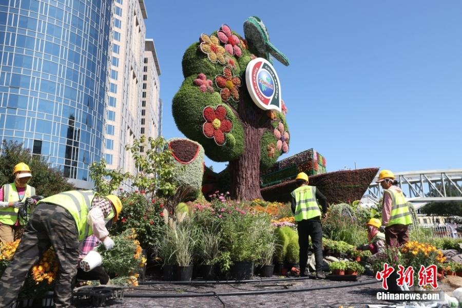 Workers set up a flower bed to greet the upcoming 2024 FOCAC Summit in Beijing, Aug. 27, 2024. (Photo: China News Service/Jiang Qiming)