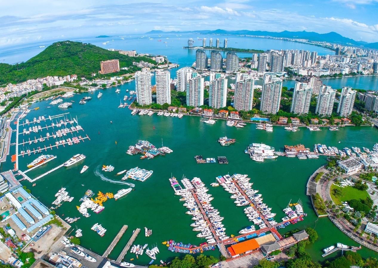 Photo shows the core area of the yacht industry in Hainan Free Trade Port, which comprises the Sanya International Yacht Center, Sanya Cruise Tourism Center, and Visun Royal Yacht Club. (People's Daily Online/Ye Longbin)