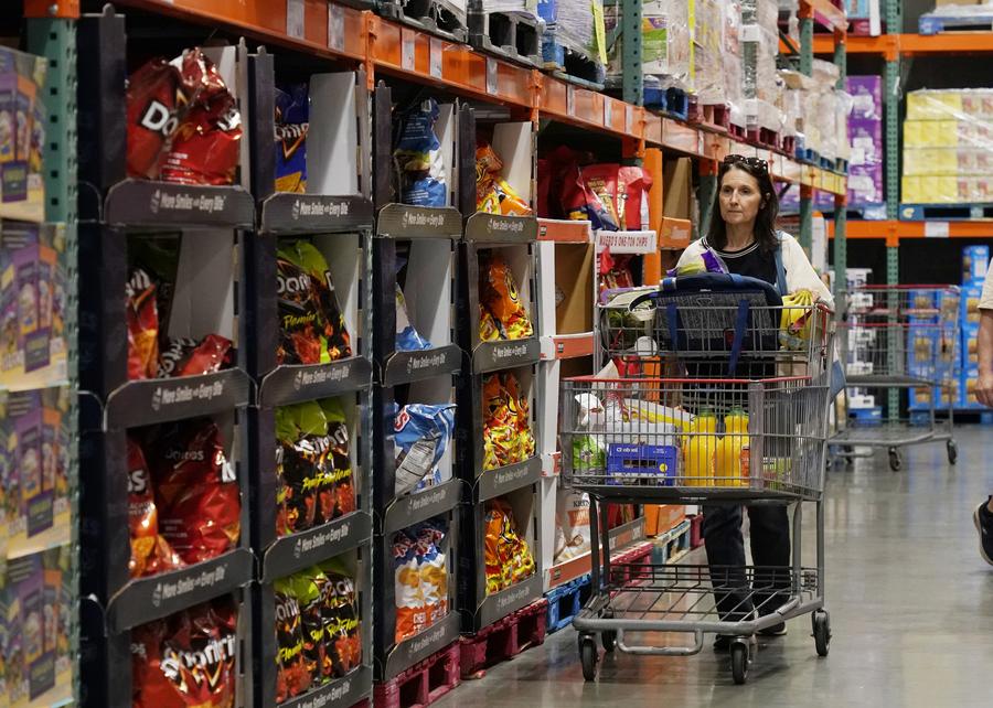 A customer selects goods at a supermarket in Foster City, California, the United States, Feb. 28, 2024. (Photo by Li Jianguo/Xinhua)
