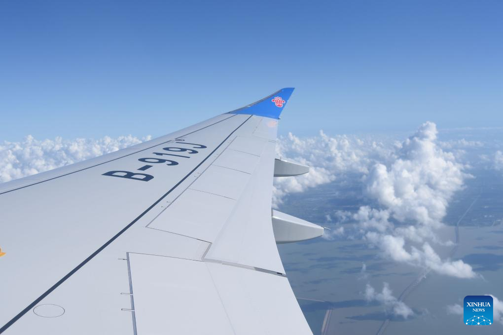 The first C919 aircraft of China Southern Airlines flies from Shanghai to Guangzhou, Aug. 29, 2024. (Xinhua/Tian Jianchuan)