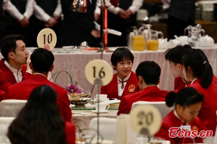 Members of the 2024 Paris Olympic Games Mainland Olympians delegation attend a welcome reception and banquet hosted by the Hong Kong Special Administrative Region government, Aug. 29, 2024. (Photo: China News Service/Li Zhihua)