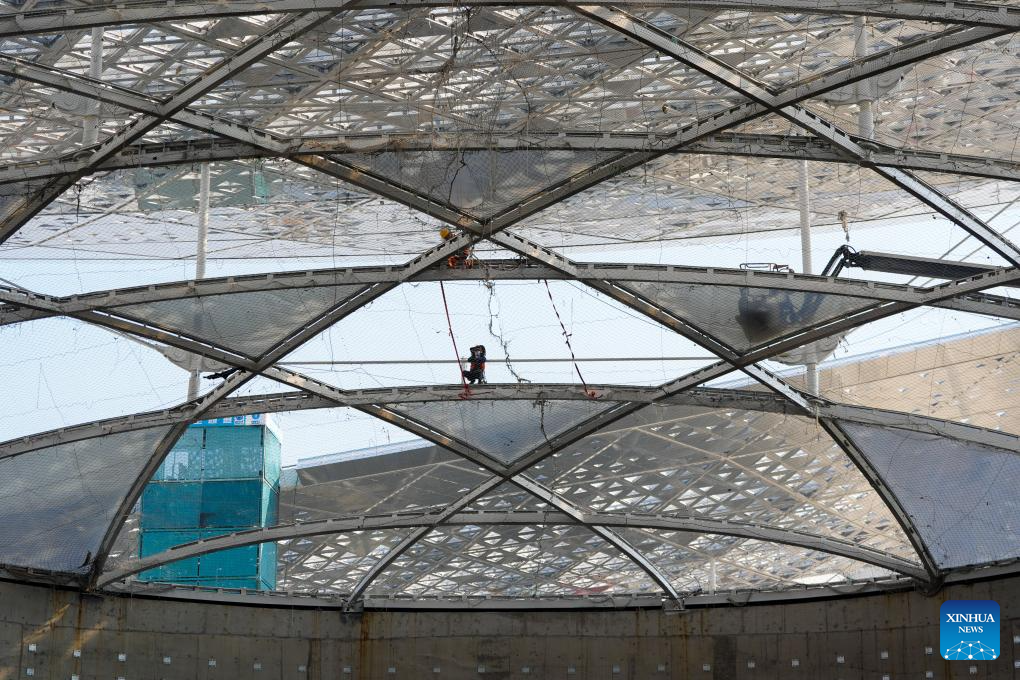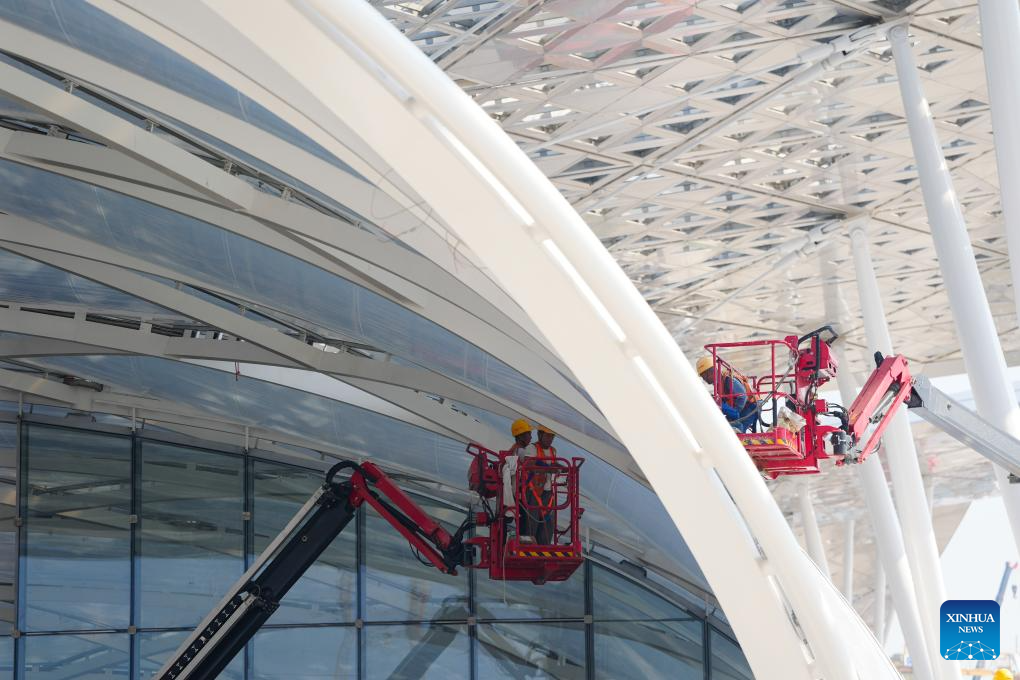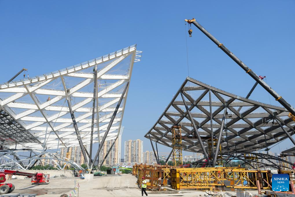 This photo taken on Aug. 30, 2024 shows the construction site of the integrated transportation hub at the Beijing Sub-center Station in Tongzhou District, sub-center of Beijing, capital of China. (Xinhua/Ju Huanzong)?