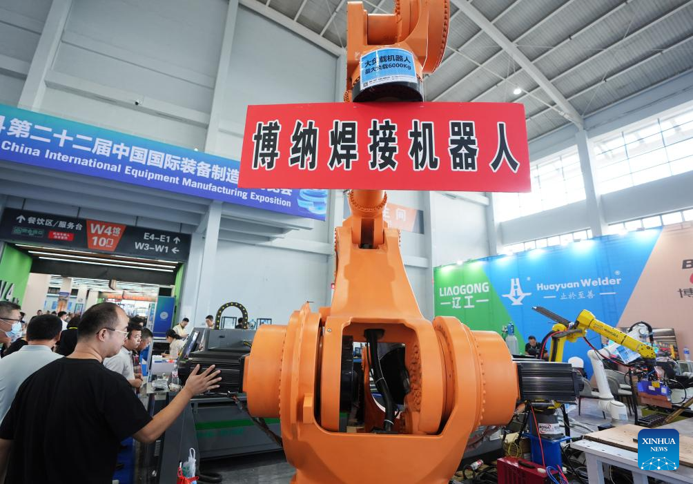 People visit the 22nd China International Equipment Manufacturing Exposition in Shenyang, northeast China's Liaoning Province, Sept. 1, 2024. The expo kicked off on Sunday at Shenyang International Exhibition Center and will last till Sept. 4. (Xinhua/Li Gang)
