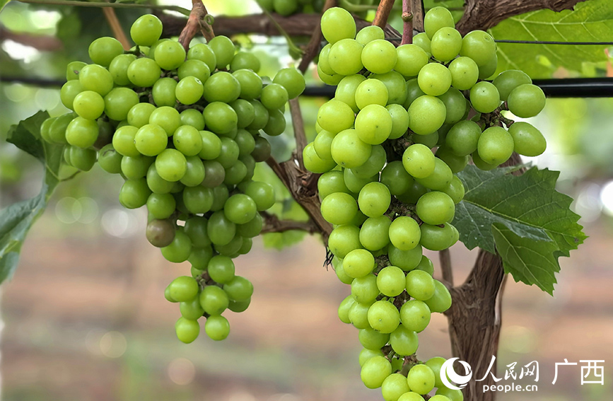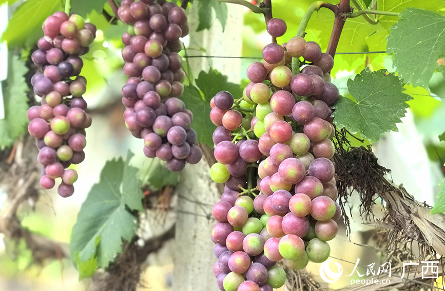 Photo shows grapes in a grape planting base in Gucun village, Wushan township, Xingbin district, Laibin city, south China's Guangxi Zhuang Autonomous Region. (People's Daily Online/Fu Huazhou)