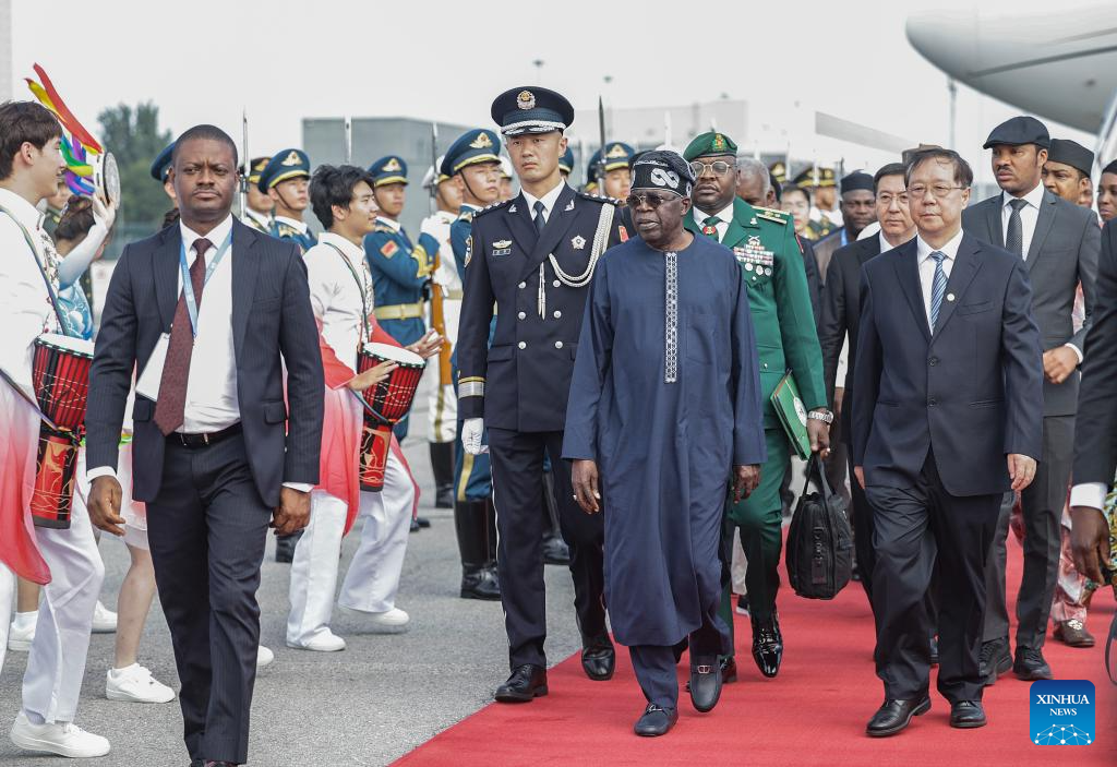 Nigerian President Bola Tinubu arrives for the 2024 Summit of the Forum on China-Africa Cooperation (FOCAC) in Beijing, capital of China, Sept. 1, 2024. (Xinhua/Ju Huanzong)