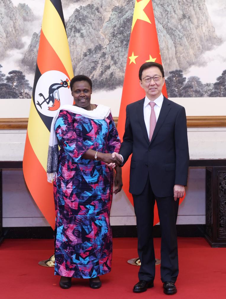 Han said China is willing to join hands with Uganda to deepen exchanges and cooperation in various fields, promote solid progress in cooperation, and contribute more to building a high-level China-Africa community with a shared future.