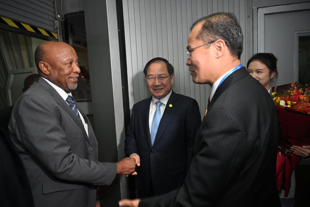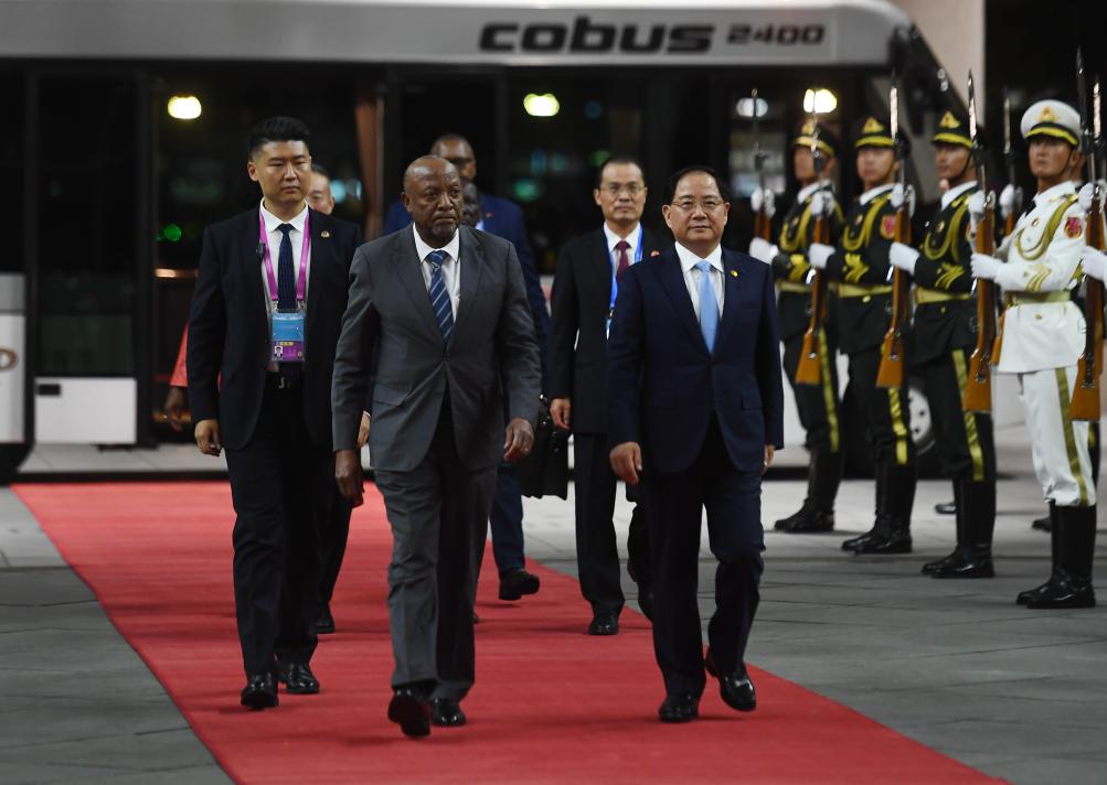 Namibia's President Nangolo Mbumba arrives for the 2024 Summit of the Forum on China-Africa Cooperation (FOCAC) in Beijing, capital of China, Sept. 2, 2024. (Xinhua/Jin Liangkuai)