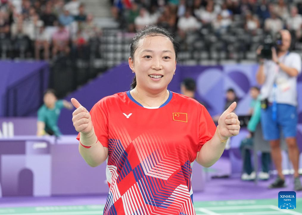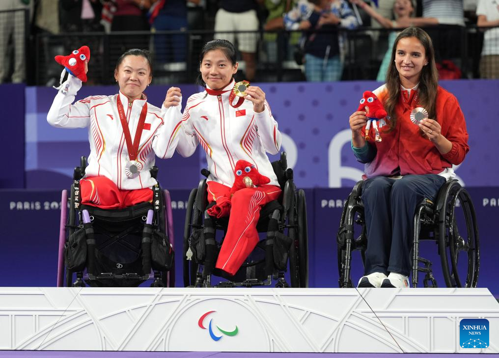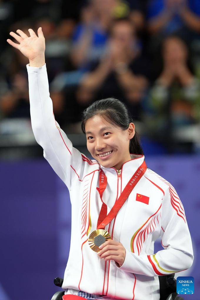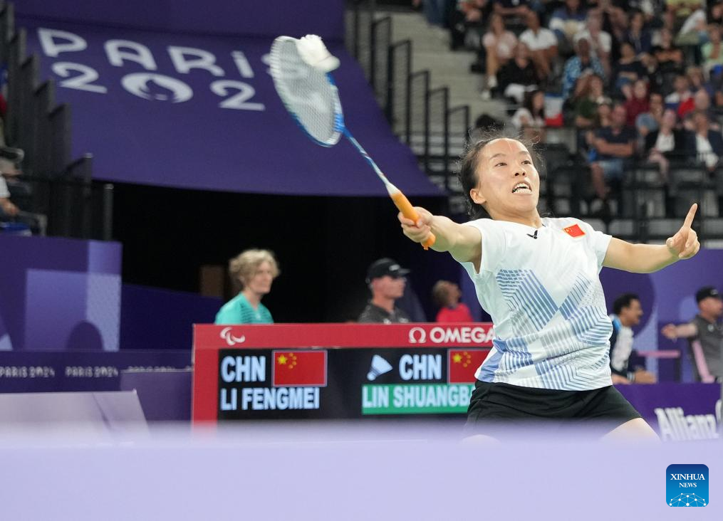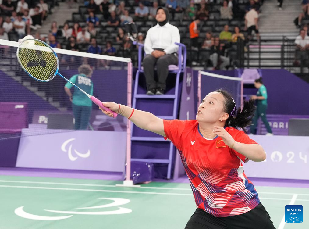 PARIS, Sept. 3 (Xinhua) -- Chinese badminton players showcased their dominance at the Paris Paralympics on Monday, securing an impressive seven gold medals, while para-archer Jodie Grinham made history as the first pregnant athlete to win a Paralympic medal.