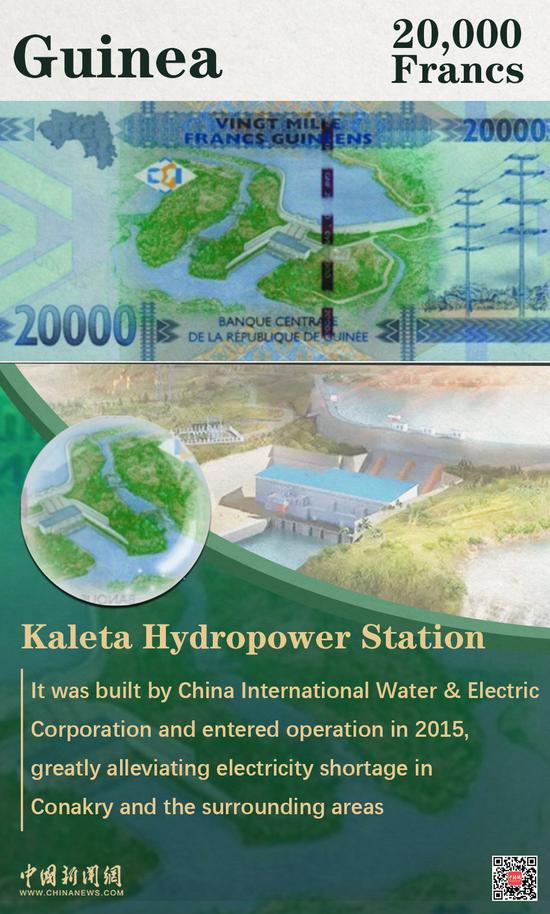 The 20,000 Guinean Franc note displays on its back the Kaleta Hydropower Station built by China International Water &Electric Corporation. For more than half a century, China and Guinea have collaborated in the development of the latter’s hydropower industry to transform the “water tower” of West Africa into a “power tower.”
