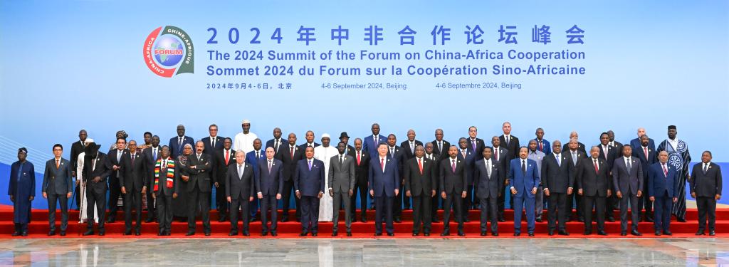 Chinese President Xi Jinping and foreign leaders gather for group photos prior to the opening ceremony of the 2024 Summit of the Forum on China-Africa Cooperation (FOCAC) at the Great Hall of the People in Beijing, capital of China, Sept. 5, 2024. Xi on Thursday attended the opening ceremony of the 2024 Summit of the Forum on China-Africa Cooperation (FOCAC) and delivered a keynote speech. (Xinhua/Rao Aimin)