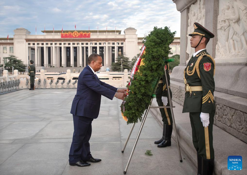 Sao Tome and Principe's Prime Minister Patrice Trovoada lays a wreath at the Monument to the People's Heroes on the Tian'anmen Square in Beijing, capital of China, Sept. 5, 2024. (Xinhua/Li Tao)
