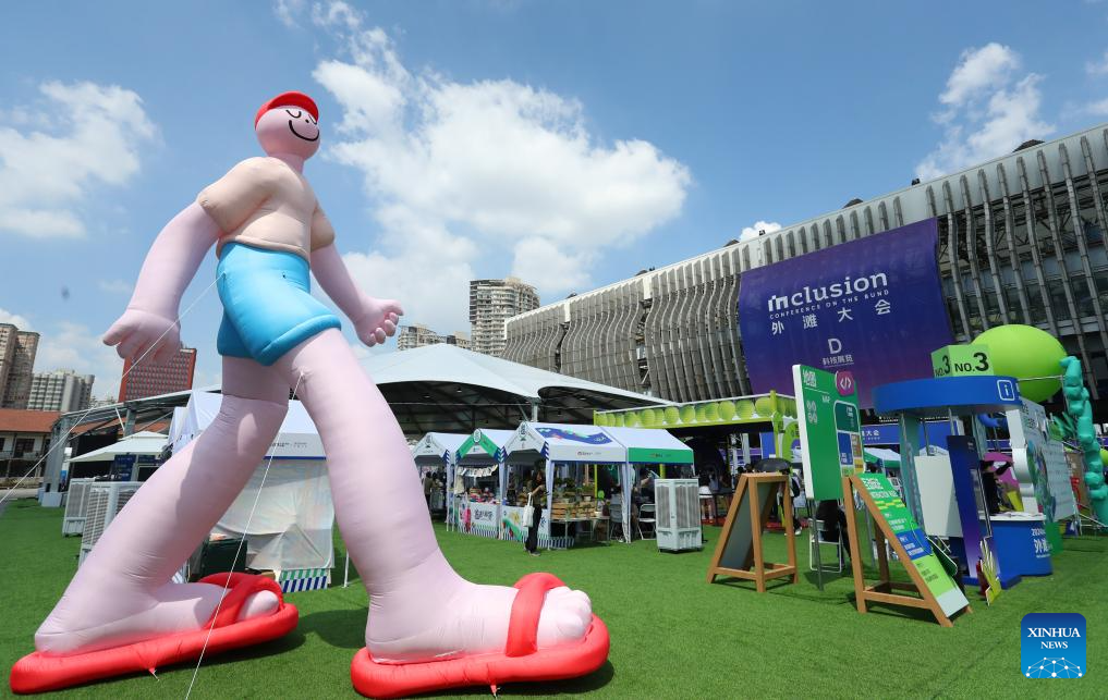 An outdoor displaying area of the 2024 Inclusion Conference on the Bund is seen in Shanghai, east China, Sept. 5, 2024. With the theme Technology for a Sustainable Future, the conference kicked off here on Thursday. (Xinhua/Fang Zhe)