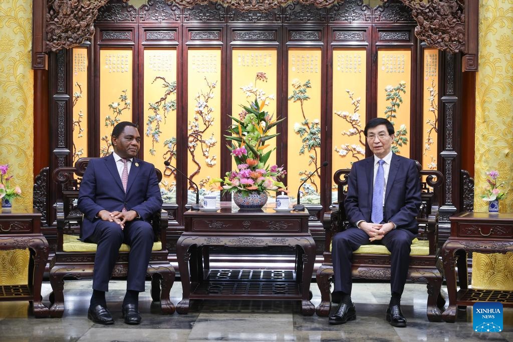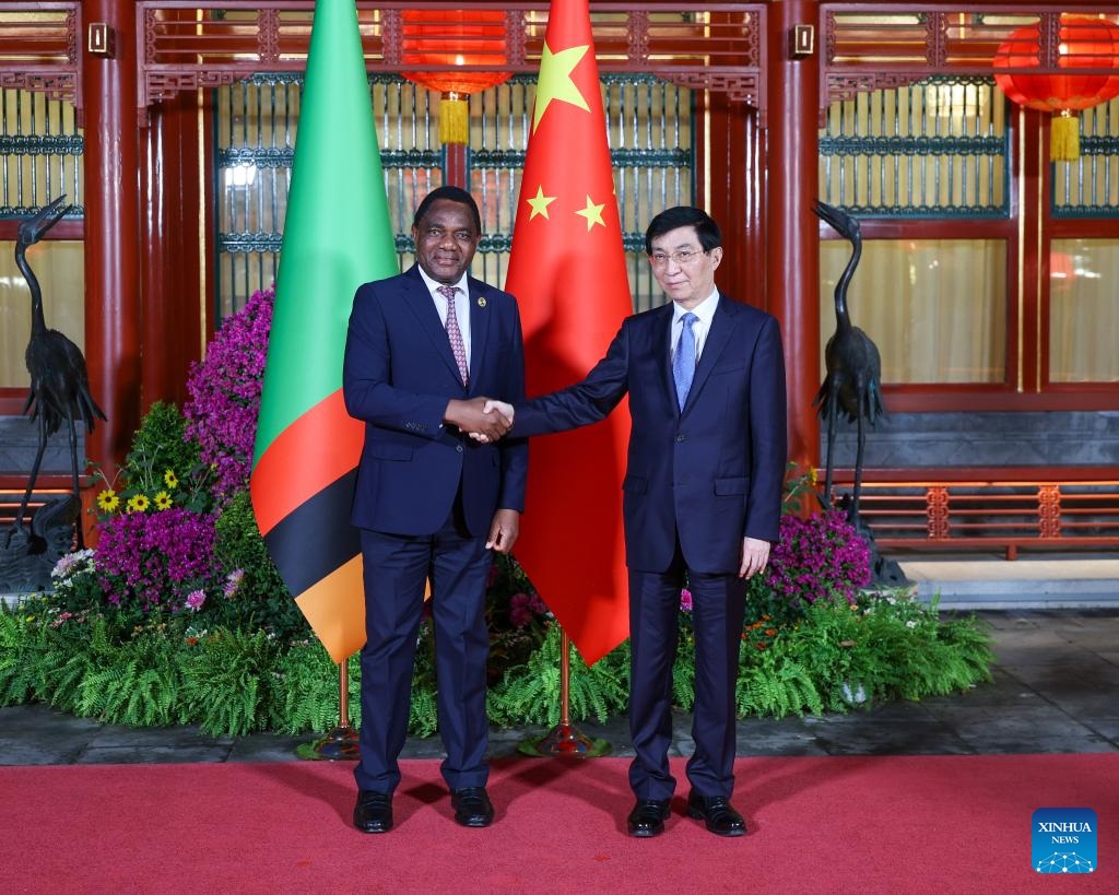 BEIJING, Sept. 5 (Xinhua) -- China's top political advisor Wang Huning on Thursday met with Zambian President Hakainde Hichilema, who is in Beijing for the 2024 Summit of the Forum on China-Africa Cooperation (FOCAC).