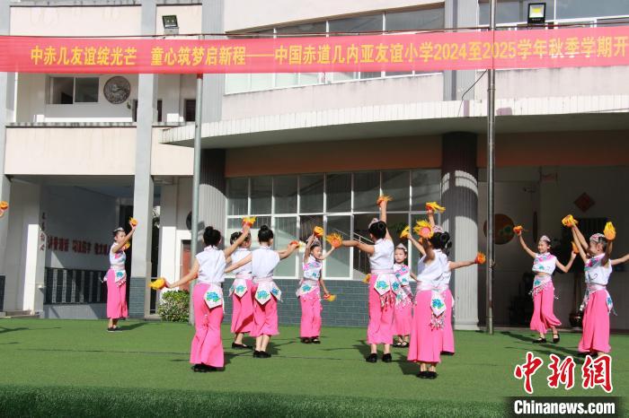 Students perform at the autumn opening ceremony of the China-Equatorial Guinea Friendship Primary School in Jinping Miao, Yao, and Dai Autonomous County, southwest China's Yunnan Province, Sept. 2, 2024. (Photo courtesy of Ran Hongyan)