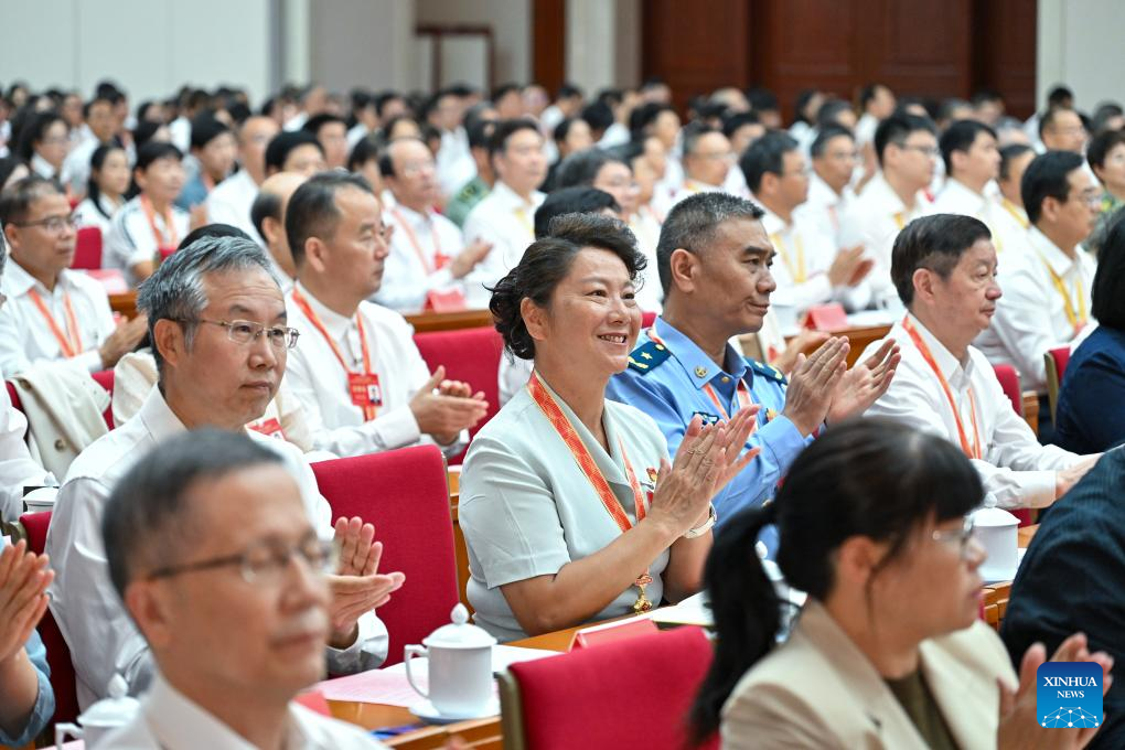 Participants attend an awarding ceremony to honor model teachers and outstanding groups and institutions in China's education sector in Beijing, capital of China, Sept. 8, 2024. The awarding ceremony was held on Sunday in Beijing ahead of Teachers' Day, which falls on Sept. 10. This year's Teachers' Day is the 40th of its kind in China. (Xinhua/Li Xin)