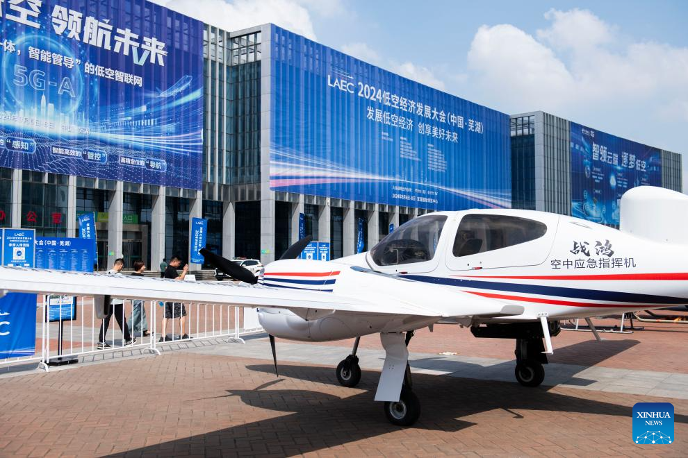 An exhibition displaying unmanned aerial vehicles, manned aircraft, airspace management systems, and other innovative hi-tech products of the low-altitude economy industry was held in Wuhu City during the ongoing 2024 Low Altitude Economic Development Conference (LAEC).