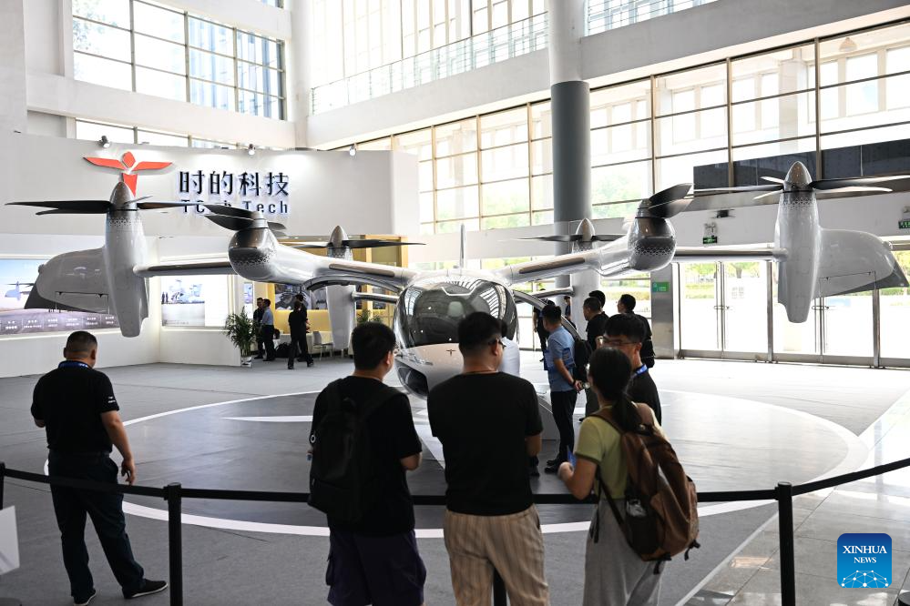 Visitors view an electric aircraft at an exhibition of the 2024 Low Altitude Economic Development Conference in Wuhu, east China's Anhui Province, Sept. 6, 2024. (Xinhua/Huang Bohan)
