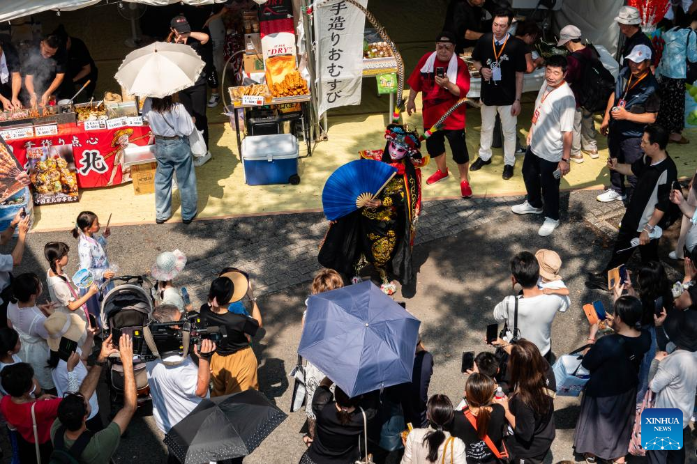 People watch a performance of Sichuan opera "Bianlian," also known as face-changing, during China Festival 2024 at Yoyogi Park in Tokyo, Japan, Sept. 7, 2024. China Festival 2024 kicked off in Yoyogi Park in downtown Tokyo on Saturday to promote people-to-people exchanges between China and Japan. (Xinhua/Zhang Xiaoyu)