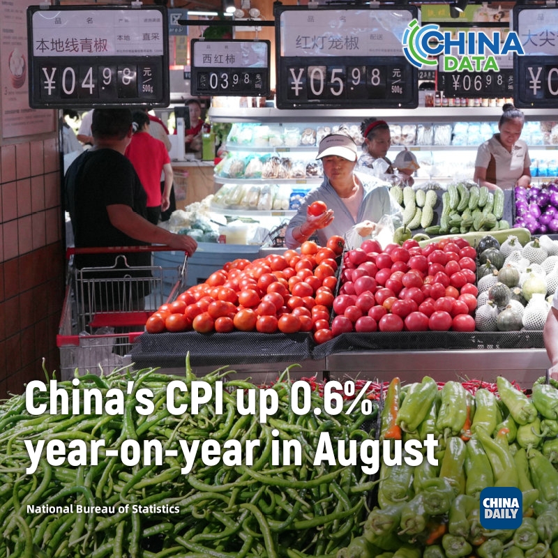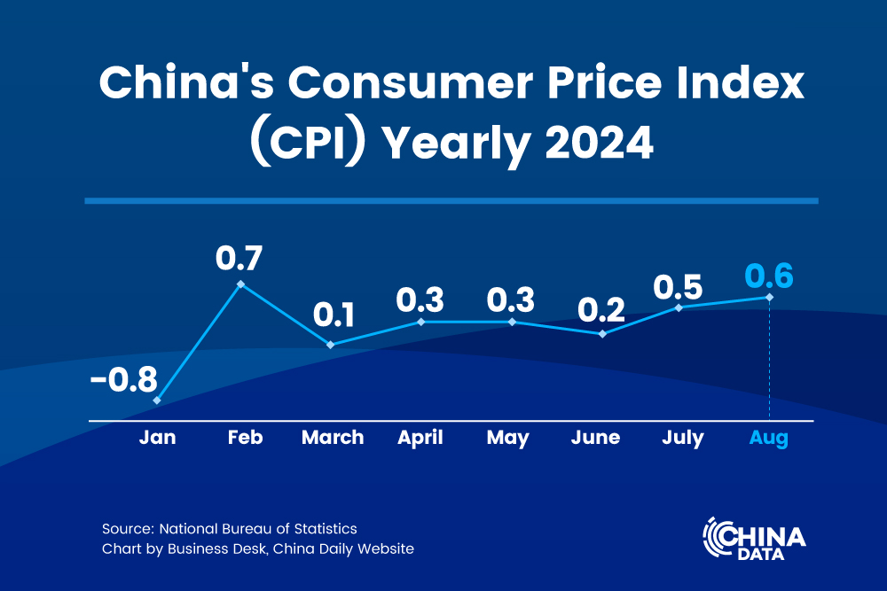 The consumer price index (CPI), a main gauge of inflation, was up 0.6 percent year-on-year last month, quickening from the 0.5 percent increase in July, the National Bureau of Statistics (NBS) said in a statement. On a monthly basis, the CPI grew 0.4 percent in August, slightly lower than the 0.5 percent increase in July.