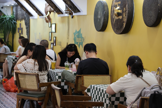 Tourists visit a coffee shop in Dongxing city, south China's Guangxi Zhuang Autonomous Region. (Photo/Su Shiyu)
