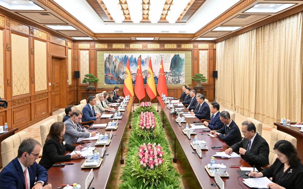 The two sides should work for mutual benefits by promoting development in high-tech fields like artificial intelligence, the digital economy and new energy, Xi said, adding that China hopes Spain will continue to provide a fair, equitable, safe and non-discriminatory business environment for Chinese enterprises to invest and do business in the country.