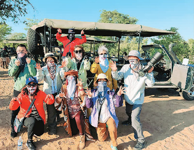 Chinese tourists pose for a photo in Chobe National Park, northern Botswana. (Photo courtesy of China CYTS Tours Holding Co., Ltd.)