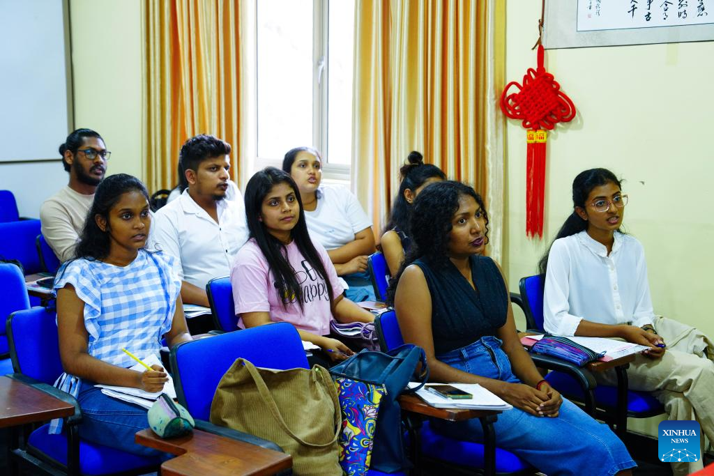 Students majoring in Chinese have a course at Confucius Classroom in Sabaragamuwa University in the southern foothills of Sri Lanka's central mountains, Sept. 4, 2024. (Xinhua/Wu Yue)