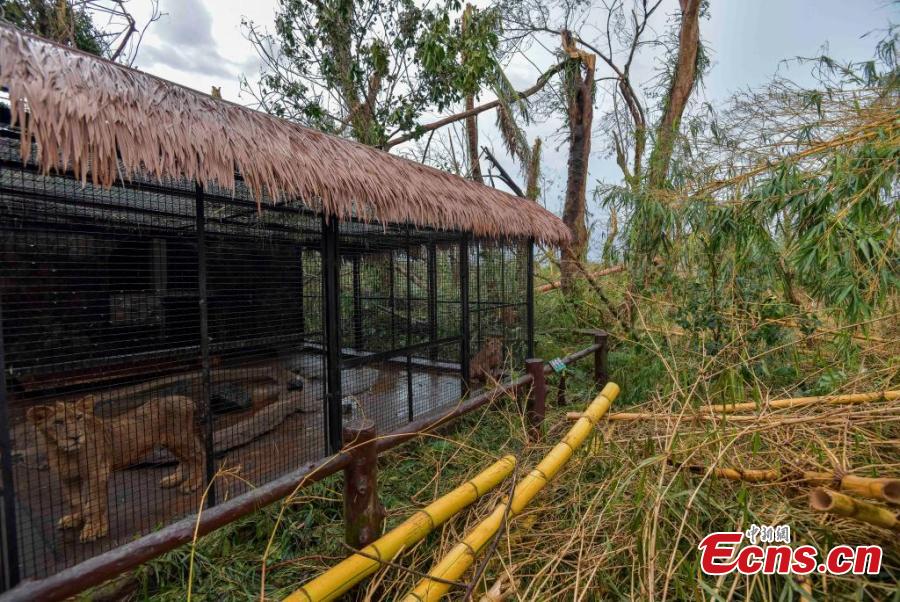 Staff members clean up at Hainan Tropical Wildlife Park and Botanical Garden in Haikou, south China's Hainan Province, Sept. 9, 2024. (Photo: China News Service/Luo Yunfei)