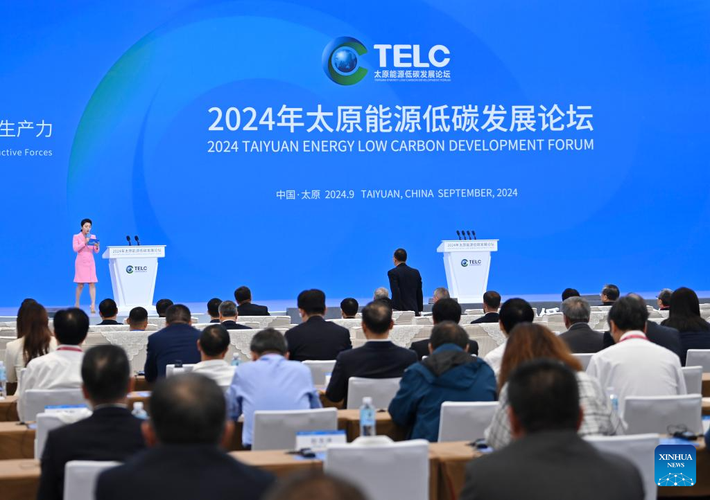 This photo taken on Sept. 10, 2024 shows the opening ceremony of the 2024 Taiyuan Energy Low Carbon Development Forum in Taiyuan, north China's Shanxi Province. (Xinhua/Yang Chenguang)