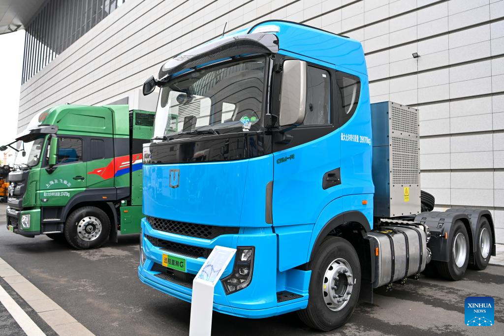 New energy vehicles are on display at an industrial expo during the 2024 Taiyuan Energy Low Carbon Development Forum in Taiyuan, north China's Shanxi Province, Sept. 10, 2024. (Xinhua/Yang Chenguang)