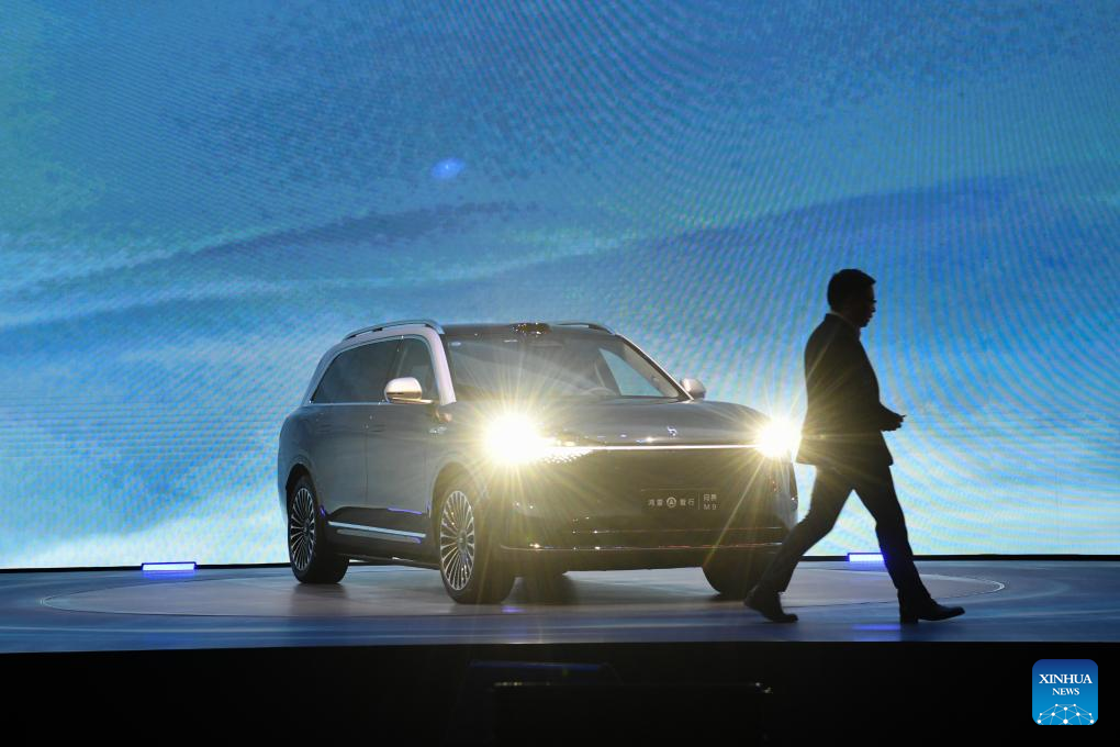 Huawei releases a new edition of Aito M9 in Shenzhen, south China's Guangdong Province, Sept. 10, 2024. China's technology giant Huawei unveiled the world's first commercial tri-fold smartphone, the Mate XT, during a new products release event here Tuesday. A new edition of Aito M9 and newly released Luxeed R7, both powered by Huawei's Harmony Intelligent Mobility Alliance (HIMA), were also released during the event. (Xinhua/Liang Xu)
