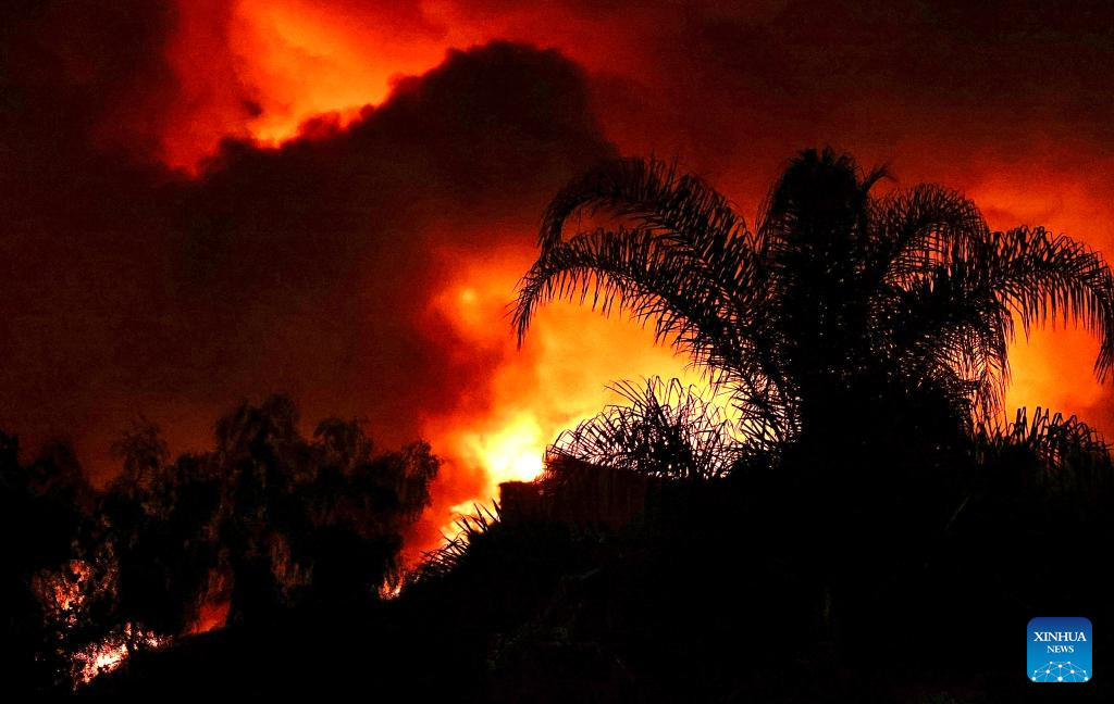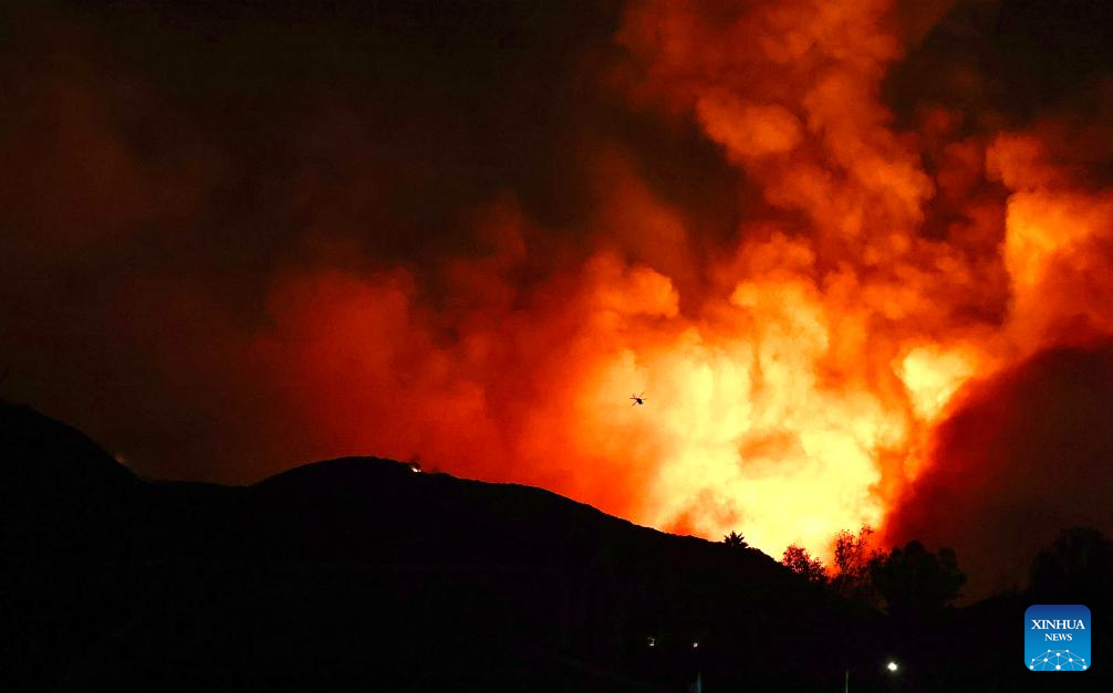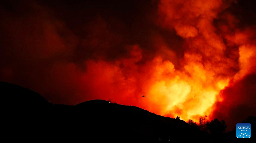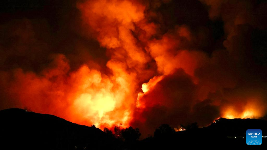 LOS ANGELES, Sept. 10 (Xinhua) -- Three fast-moving wildfires continued to burn in Southern California Tuesday as millions of residents in the region are still under an excessive heat warning.