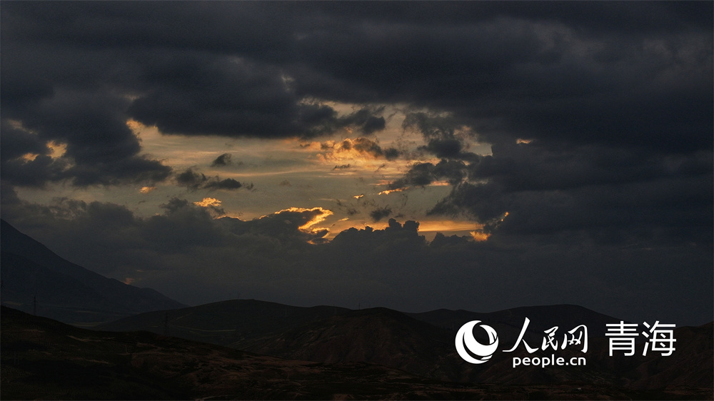 The sunset decorates the clouds over the mountain with golden rays. (People's Daily Online/Gan Haiqiong)