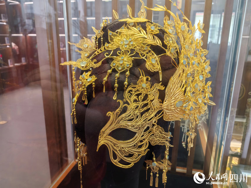 Photo shows an exquisite headdress created in He Yanhong's workshop. (People's Daily Online/Liu Haitian)