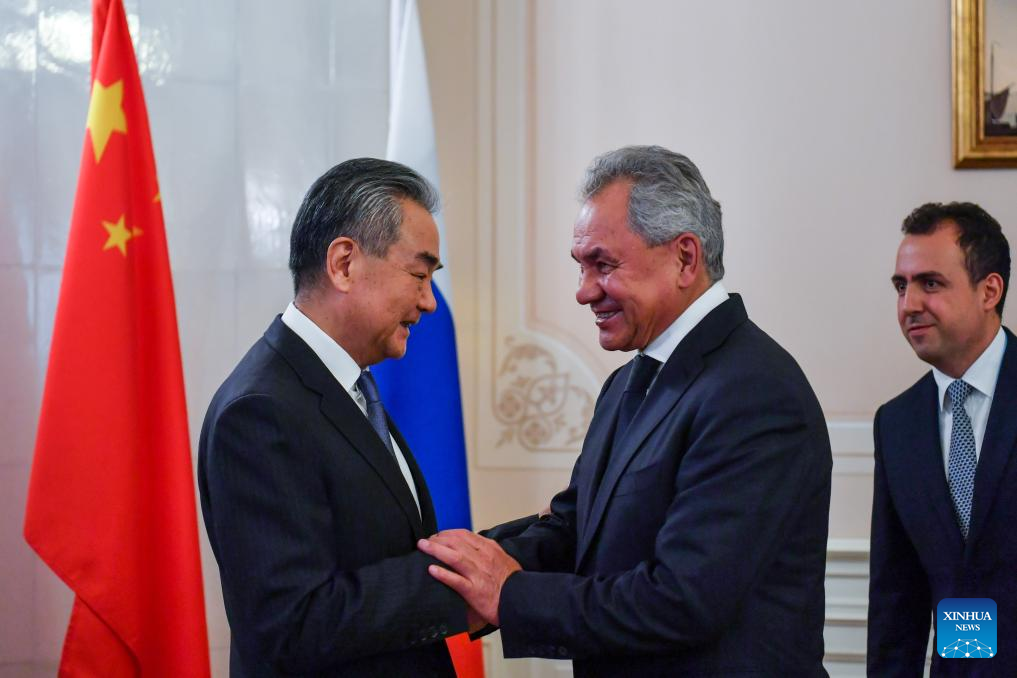 ST. PETERSBURG, Sept. 10 (Xinhua) -- China is willing to strengthen strategic communication with Russia and continuously enrich the strategic connotations of bilateral ties, Wang Yi, director of the Office of the Central Commission for Foreign Affairs, said in a meeting with secretary of the Russian Federation Security Council Sergei Shoigu on Tuesday in St. Petersburg.