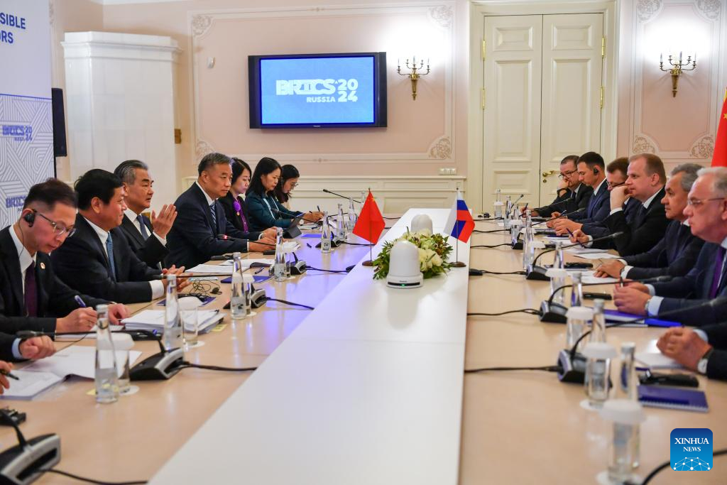 Meanwhile, Wang said that China supports Russia's work as the rotating chair of BRICS and is willing to join hands to deepen mutual trust and cooperation among BRICS countries, to shape the BRICS mechanism into a major channel for emerging powers to make their voices heard and an important platform for solidarity and cooperation of the "Global South" and to continuously open up new situations in "BRICS+" cooperation.
