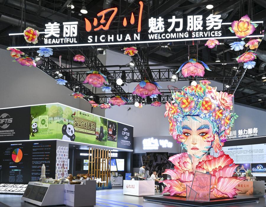 This photo taken on Sept. 11, 2024 shows a view of the pavilion of south China's Sichuan Province at the China National Convention Center in Beijing, capital of China. (Xinhua/Hao Jianwei)