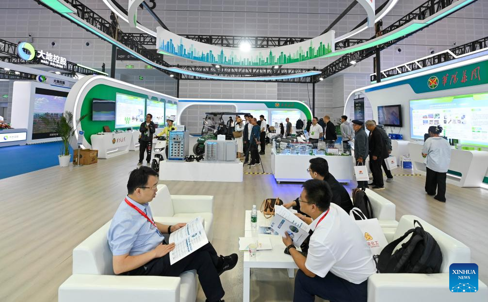 People visit China (Taiyuan) International Energy Industry Expo 2024 in Taiyuan, north China's Shanxi Province, Sept. 11, 2024. The expo, which features special exhibition areas like wind power and photovoltaics, new energy storage, new energy vehicle and etc., is designed to demonstrate new technologies and products in the energy field. (Xinhua/Yang Chenguang)