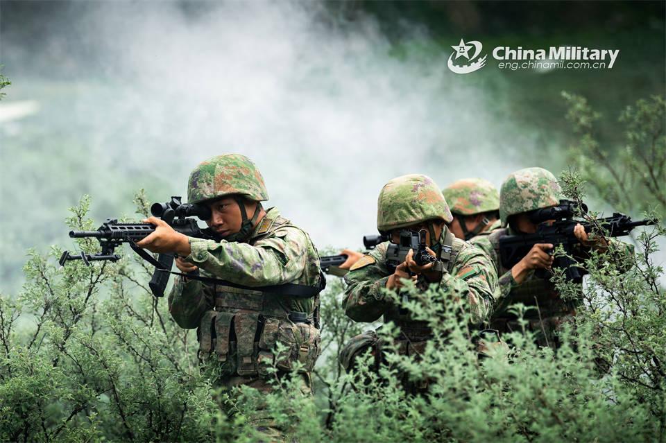 Soldiers assigned to a brigade under the Chinese PLA 81st Group Army carry out an improvised war preparedness maneuver training exercise aiming to hone the troops' quick response ability on July 9, 2024. (eng.chinamil.com.cn/Photo by Cao Zhuang)