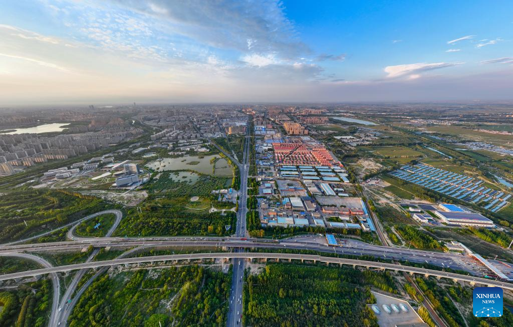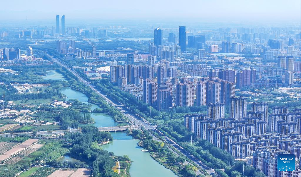An aerial drone photo taken on Aug. 21, 2024 shows a view in Yinchuan, northwest China's Ningxia Hui Autonomous Region. (Xinhua/Feng Kaihua)