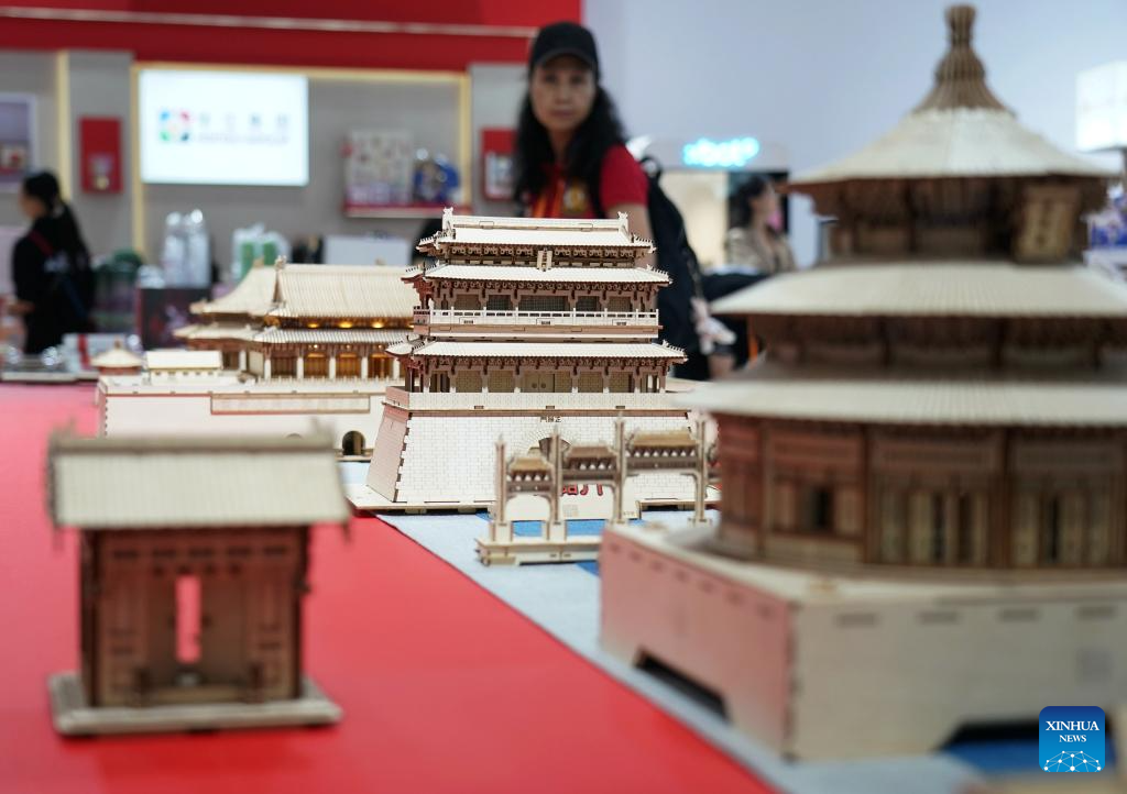 An exhibit showcasing the Beijing Central Axis is displayed during the 2024 China International Fair for Trade in Services (CIFTIS) at the Shougang Park in Beijing, capital of China, Sept. 12, 2024. Themed "Global Services, Shared Prosperity," the 2024 CIFTIS opened at the China National Convention Center and the Shougang Park in Beijing on Thursday. (Xinhua/Zhang Chenlin)