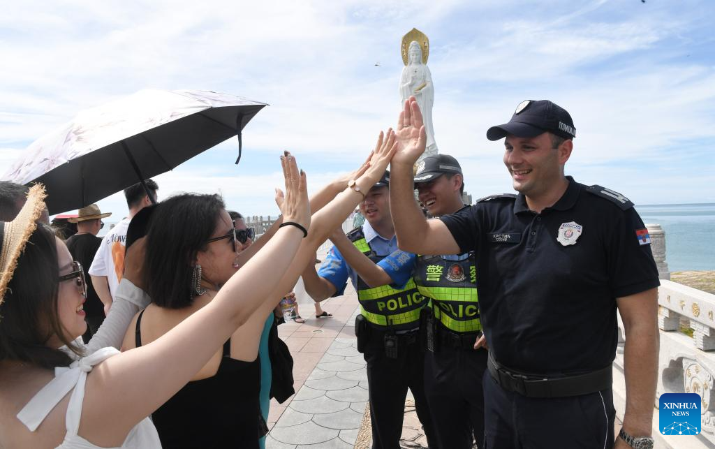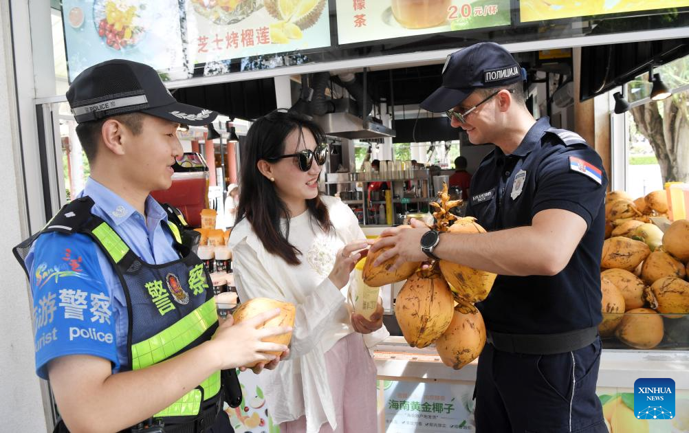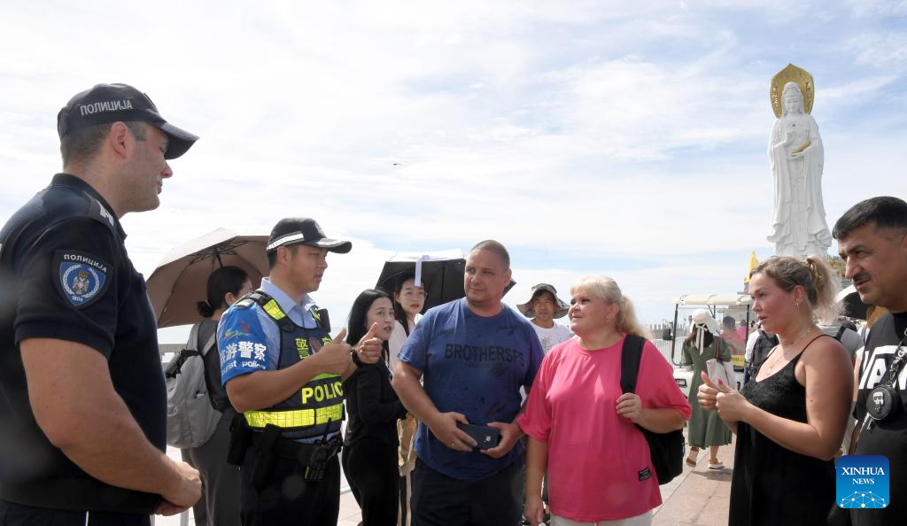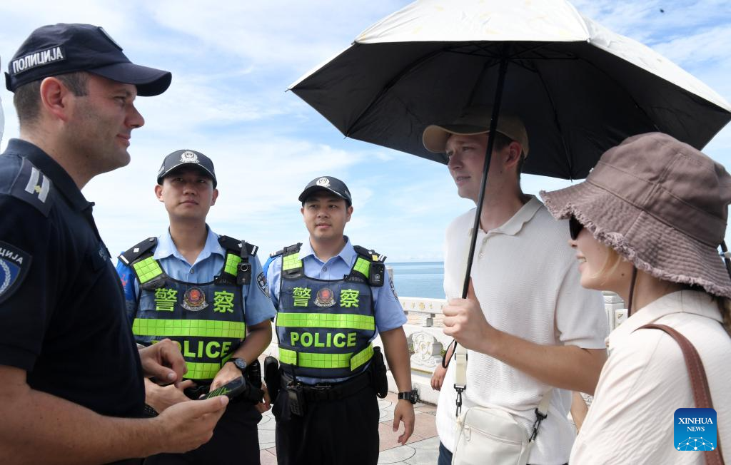 During the period, Serbian and Chinese police will patrol tourist attractions in Hainan and east China's Zhejiang Province. According to the agreement between the two sides, Serbian police will cooperate with their Chinese counterparts to meet the safety demands of Serbians in China and jointly create a safe tourism environment. (Xinhua/Zhao Yingquan)