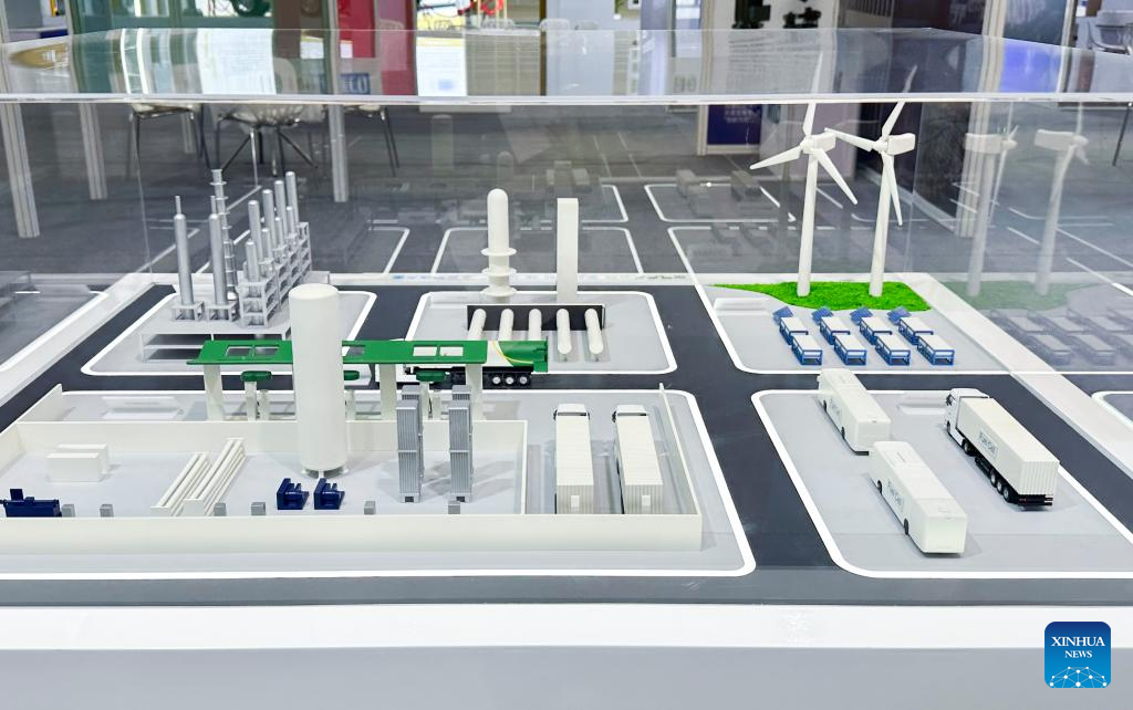 This photo taken on Sept. 10, 2024 shows a sand table model displayed by Air Products, an industrial gas, related equipment and application provider, at the China (Taiyuan) International Energy Industry Expo 2024 in Taiyuan, north China's Shanxi Province. (Xinhua/Jiang Haoran)