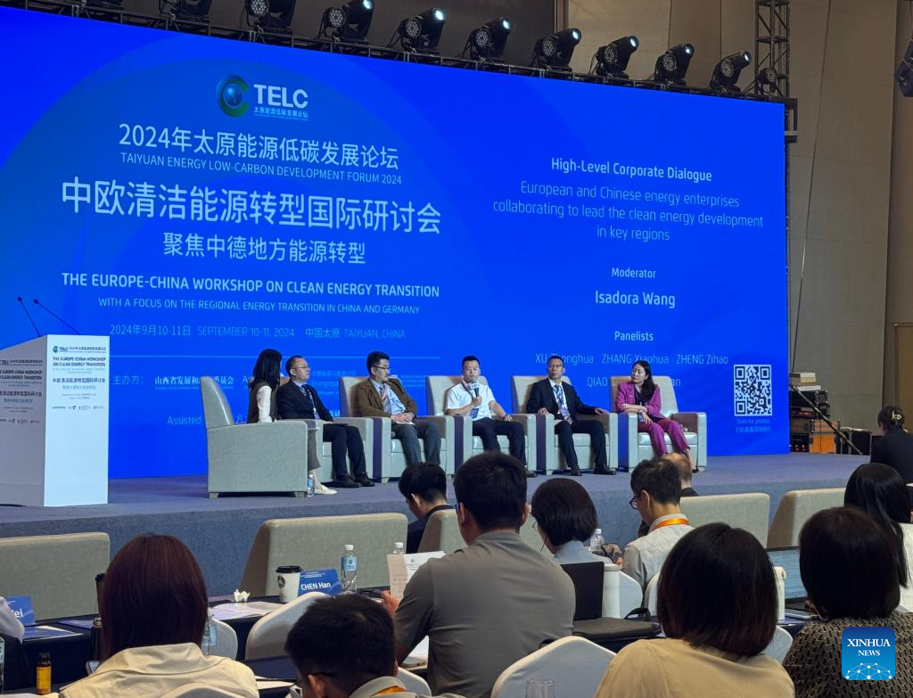 Guests attend a panel discussion session during the Europe-China Workshop on Clean Energy Transition, in Taiyuan, north China's Shanxi Province, Sept. 11, 2024. (Xinhua/Wang Xuetao)