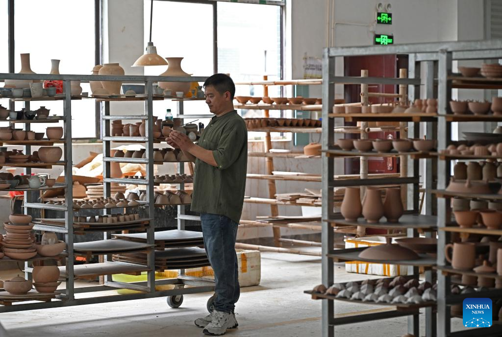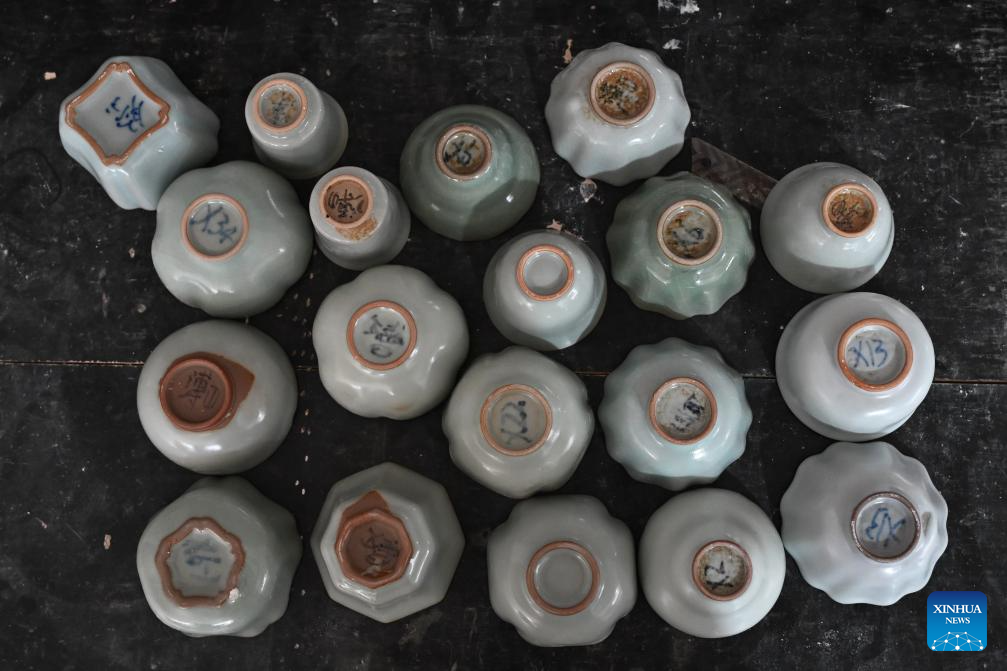 The experimental Ru porcelain products are seen at the workshop of Li Shanming in Jingdezhen, east China's Jiangxi Province, Aug. 28, 2024. (Xinhua/Sui Shangjun)