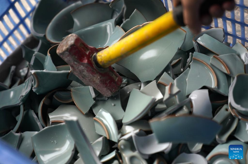 This photo shows smashed porcelain with flaws at the workshop of Li Shanming in Jingdezhen, east China's Jiangxi Province, Aug. 28, 2024. (Xinhua/Wan Xiang)