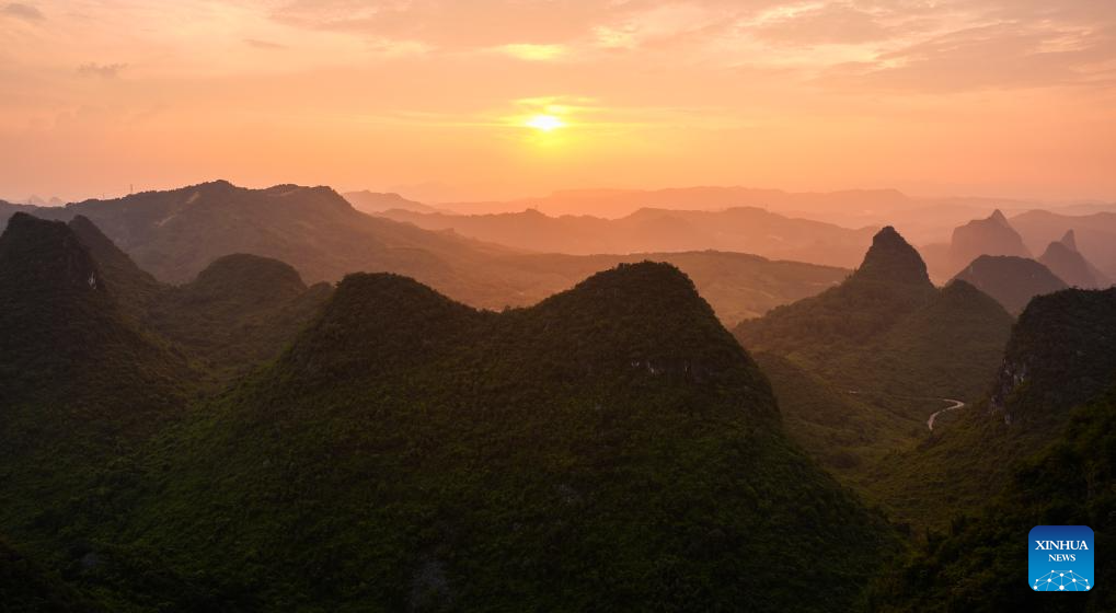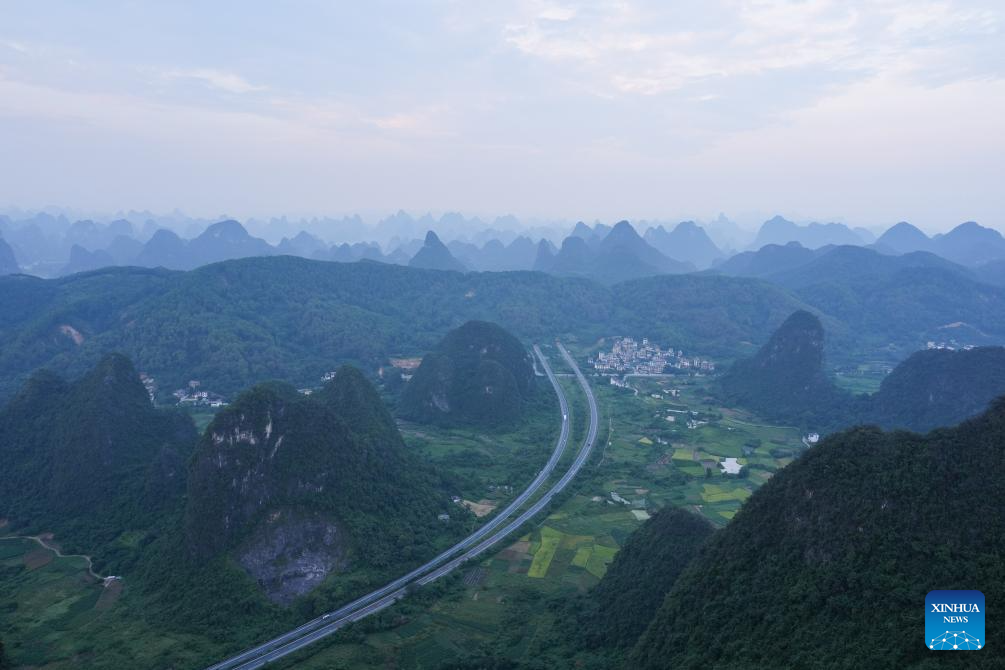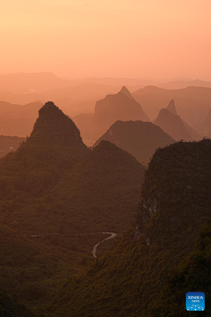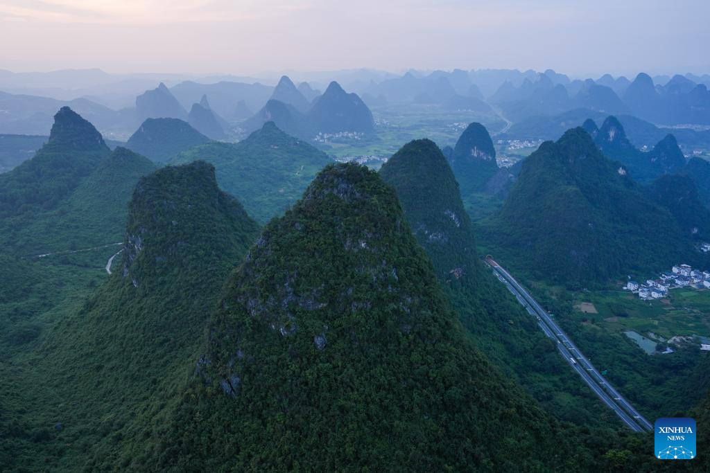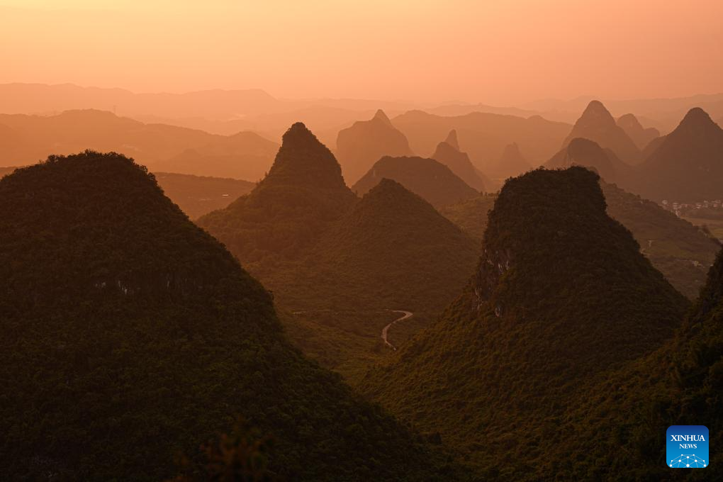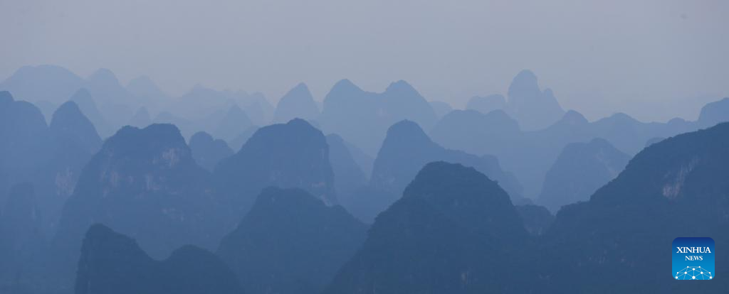 This photo taken from the Ruyi Peak cableway scenic area shows the Karst landscape in Yangshuo, Guilin, south China's Guangxi Zhuang Autonomous Region, Sept. 12, 2024. (Xinhua/Zheng Huansong)