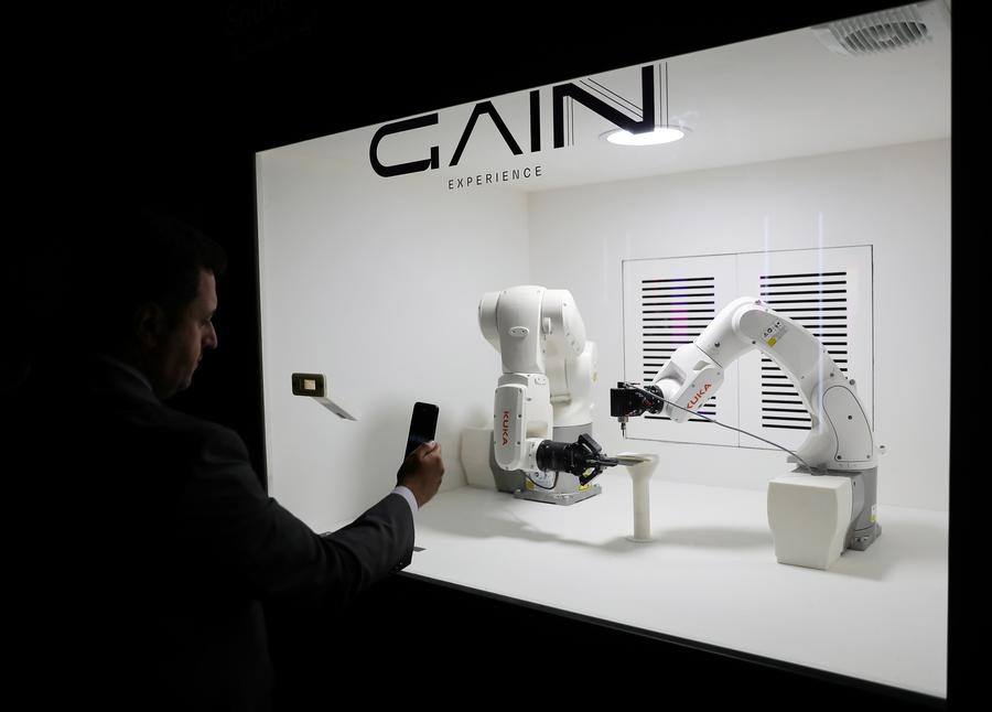 At the booth of Germany's Siemens, a human-machine conversation was taking place. "Are you functioning well right now?" A technician asked. "I'm doing great, operating normally," an AI-driven machine replied.