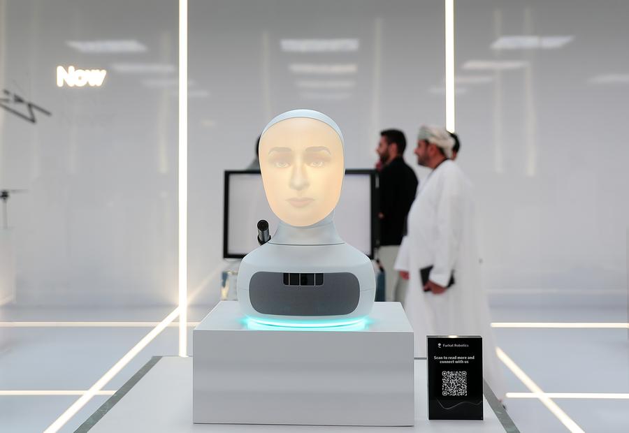 Visitors communicate with a "conversational robot" during the third edition of the Global AI Summit in Riyadh, Saudi Arabia, Sept. 12, 2024. (Xinhua/Wang Dongzhen)
